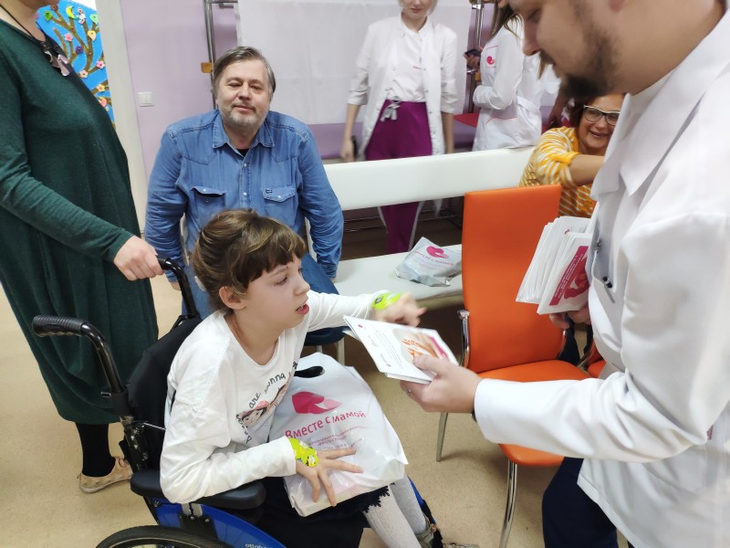 В завершении курса состоялся праздничный концерт, дети исполнили песни, которые они готовили в течение двух недель. На этот раз репертуар наших подопечных оказался не по-детски серьезным. Не обошлось и без танцев под песню любимого музыкального руководителя. В завершении праздника всех участников наградили грамотами за успешное прохождение курса и творческие успехи, а также, дети получили сладкие подарки. По традиции, мамы приняли участие в круглом столе, где имели возможность поделиться своими впечатлениями от прохождения курса реабилитации по Программе «Ранняя помощь», рассказали об успехах и новых навыках своих детей. Главный врач реабилитационного центра «Вместе с мамой», Микушин Сергей Александрович, вручил родителям разработанные специально для участников Программы методические пособия: «Домашний уход за детьми с особенностями развития», «Психологическая помощь для родителей», «Стопы».