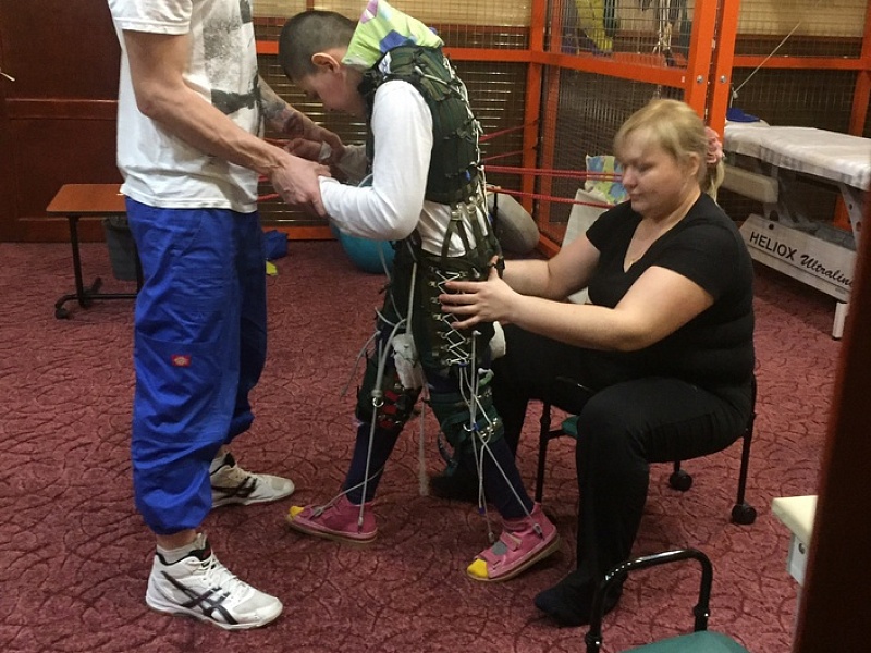 И вот нам с 14 декабря по 26 декабря посчастливилось пройти курс реабилитации в новейшем Московском центре" Вместе с мамой". Мы были " первопроходцами". И нам очень повезло. В центре работали Московские инструктора под чутким руководством польских специалистов из реацентра" Евромед". Которые с удовольствием делились своим богатейшим опытом. Слаженность работы всего коллектива, дала ребёнку только положительную динамику. На занятия сын приходил с большим удовольствием. Потому, что его там ждали Друзья. Он так называл инструкторов. Все занятия были направлены на активное движение и активную ходьбу. Занимались сразу2-3 инструктора. За курс ребёнок получал-" паук", " Угуль", массаж, потом костюм" Адели", в нем растяжки, ЛФК, " четвереньки",ходьба на" коленях" и ходьба с ходунками или крабами. Занятия с логопедом и обязательная терапия рук. Все занятия приносили ребёнку только радость . Потому что, сотрудники к каждому находили индивидуальный подход. Мы закрепили все что умели и приобрели новое. У нас очень стала хорошая вертикализация и ушла ассиметрия торса. Для меня это Очень-очень много.