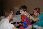 Занятия в костюме Адели, на который сделан основной упор в центре очень подошли Саши. Занятия проходили в хорошем настроении, Саша с удовольствием выполнял все задачи поставленные инструкторами. Очень радовался, что он может сам стоять. Так как костюм основан на резиновых тягах и эти тяги одеваются и подтягиваются таким образом, что формируется правильное положение спины, бедер, ног.
