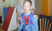С первого дня реабилитация проходит по очень плотному графику и ощутимые результаты, были заметны уже на четвертый день . Стоя в вертикализаторе у Игоря были расслаблены руки и полностью раскрыты ладошки.Занятия в костюме проводят профессиональные терапевты : Биата ,Роксана ,.Дорота . Игорёк старается выполнять всё что ему говорят, хотя нагрузка на ноги очень большая и слезы присутствуют иногда . Огромная радость-- в конце первой недели --стоя у стены Игорь сделал первые самостоятельные шаги. Инструктора считают что Игорь готов к ходьбе, но страх упасть ему мешает . Замечательные упражнения "Угол", где тренируют необходимую группу мышц. Волшебные ботинки с имитацией ходьбы. Последнее наше занятие это "Паук", где тренируют вестибулярный аппарат . Перед массажем накладывают гелевые грелки, для расслабления мышц рук и ног. После обеда через день проходит (терапия руки) и стимуляция мышц ног.